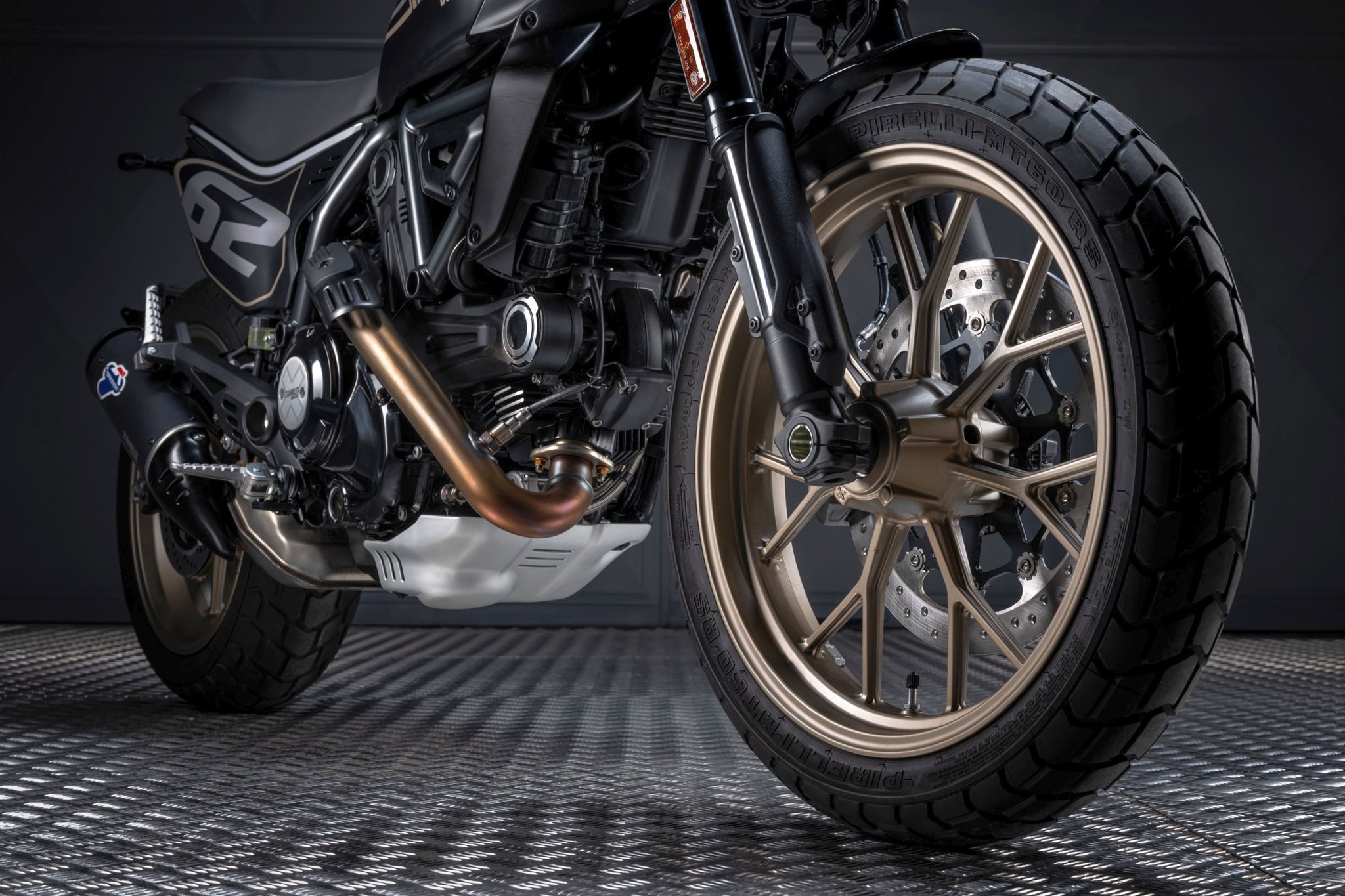Die Scrambler Full Throttle bekommt einen neuen Look. Flat-Track-Spannung trifft auf urbanen Stil. Mit der selbstbewussten schwarzen und bronzefarbenen Lackierung, dem sportlichen Charakter und dem unverwechselbaren Scrambler-Spirit ist dieses Bike perfekt für alle, die sich dynamisches Fahren mit einem Hauch von Post-Heritage wünschen.