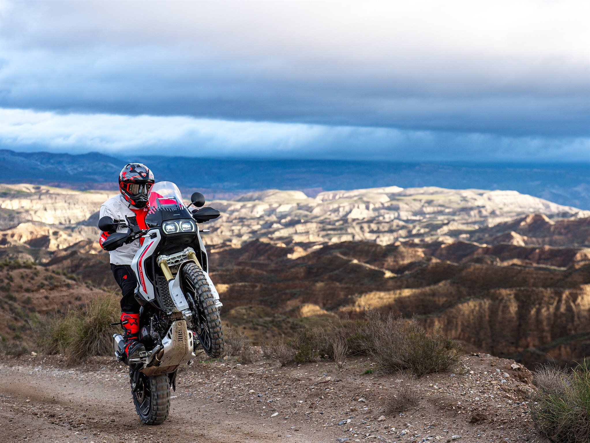 Die DesertX ist das Ergebnis intensiver Tests im Gelände, bei denen jede Offroad-Erfahrung in eine konkrete Weiterentwicklung eingeflossen ist: noch intuitivere Kontrolle, höhere Vielseitigkeit in jeder Situation und ein noch ausgeprägterer Offroad-Charakter, ohne dabei den Fahrspaß und die Präzision auf der Straße zu vernachlässigen.